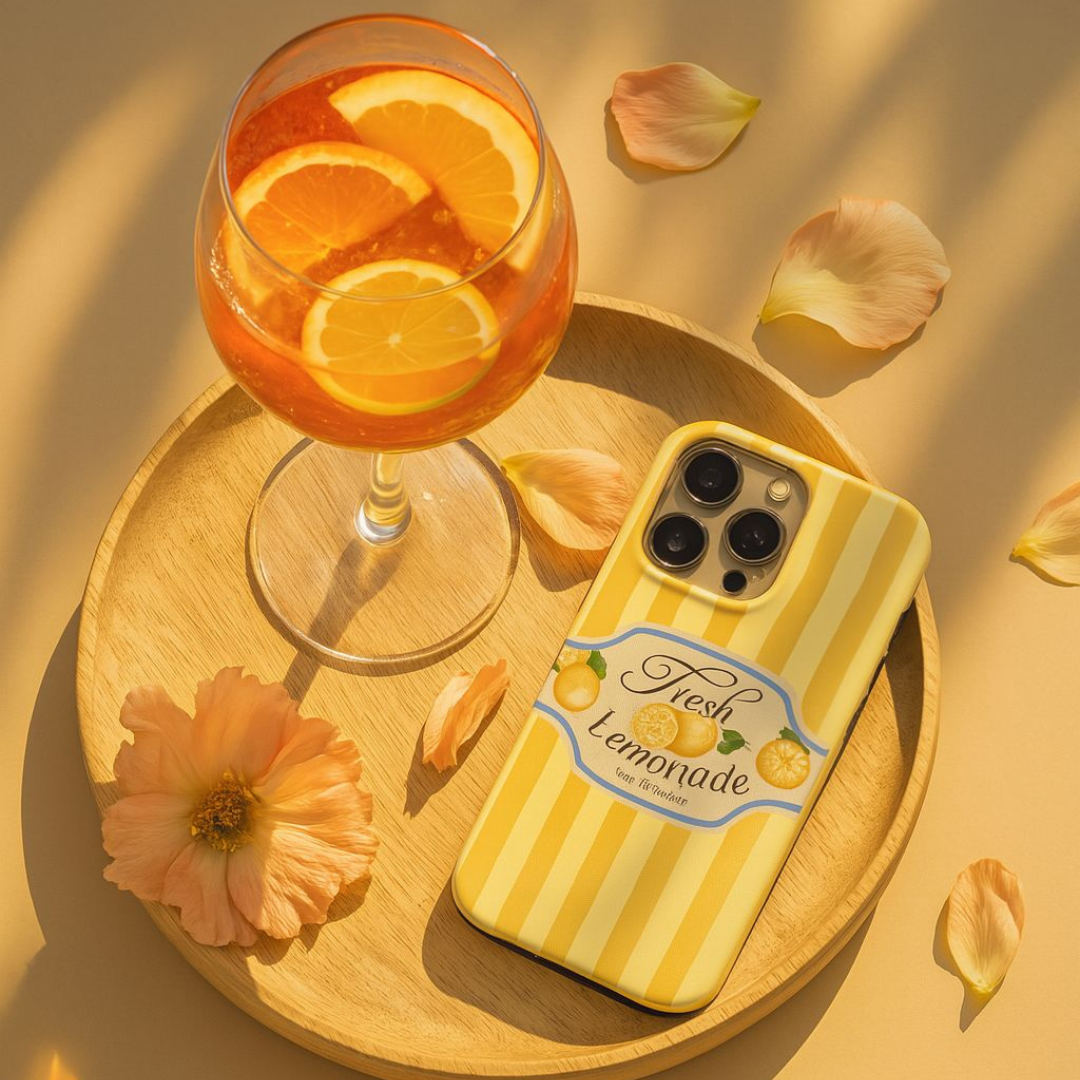 Sabor de verão, direto no seu bolso. A Case Lemonade Stand combina listras amarelas suaves com uma ilustração vintage de limões e tipografia artesanal, como se fosse retirada de uma banca charmosa na Riviera Francesa. Refrescante, charmosa e 100% organic vibes — é a escolha certa para quem vive em clima de férias.