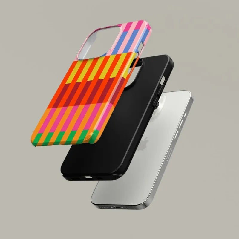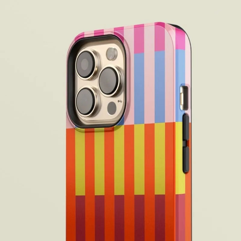 Um remix visual direto do paraíso. A Case Tropic Beats mistura listras verticais em tons tropicais — rosa, vermelho, azul, verde e amarelo — como se fosse uma faixa sonora transformada em arte. É energia pura, ideal para quem vive em movimento e ama expressar cor em cada detalhe.